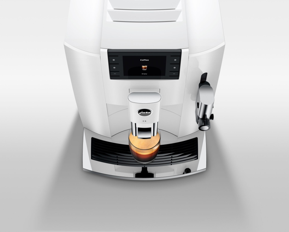 JURA hecht veel belang aan design bij haar ontwikkelingen. De E8 heeft daarom een herkenbare uitstraling en valt op door aandacht voor details, het gebruik van hoogwaardige materialen en precisie in de afwerking. Het moderne, strakke ontwerp wordt gekenmerkt door harmonische symmetrische lijnen. Heldere, eenvoudige vormen met zorgvuldig geplaatste accenten geven het structuur en karakter. Het design van de volautomaat heeft alle ingrediënten om zelfs na vele jaren fris en modern te blijven ogen.